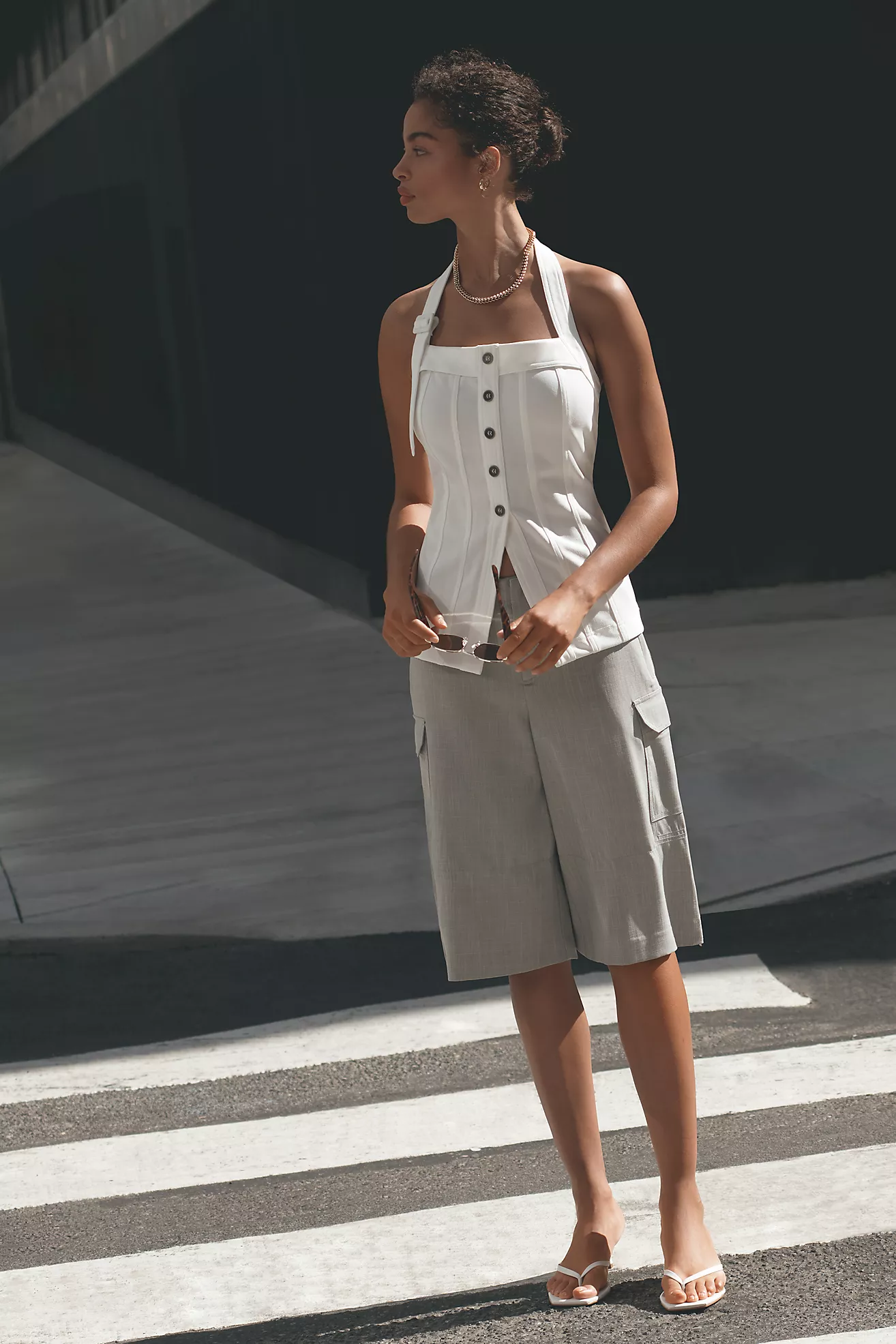 By Anthropologie Slim Bermuda Linen Blend Shorts