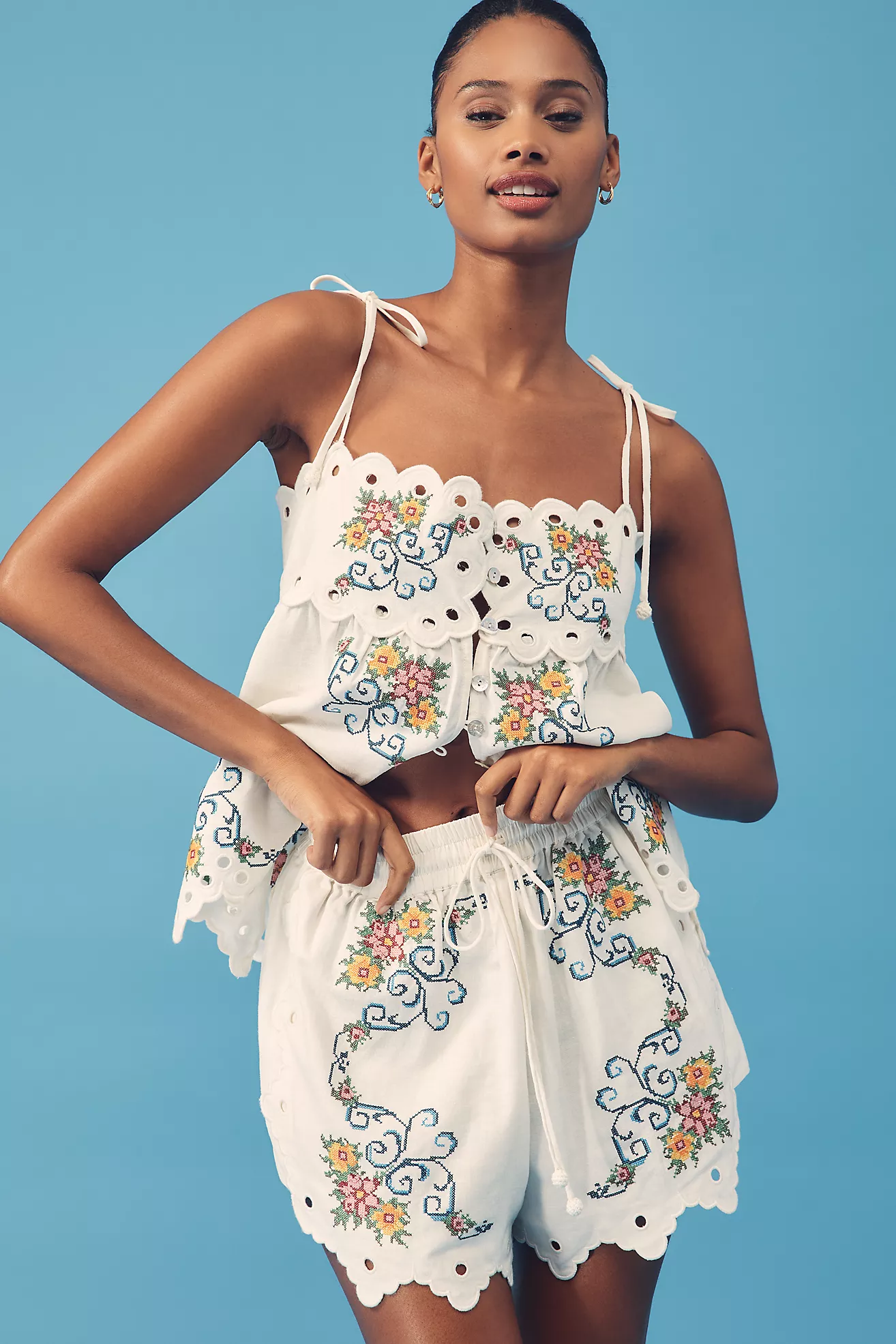 Farm Rio Grandma's Treasure Linen-Blend Pull-On Shorts