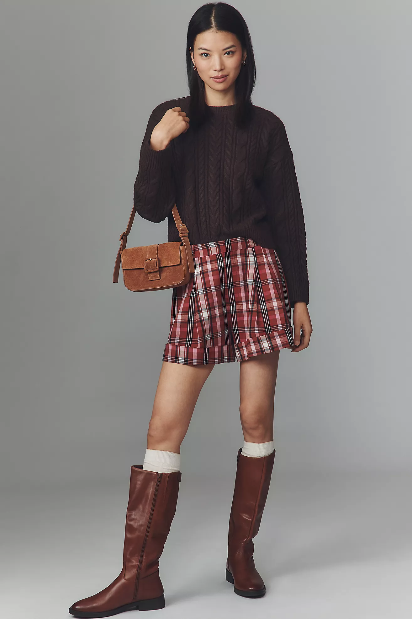 By Anthropologie Pleated Lace-Hem Knee-Length Shorts