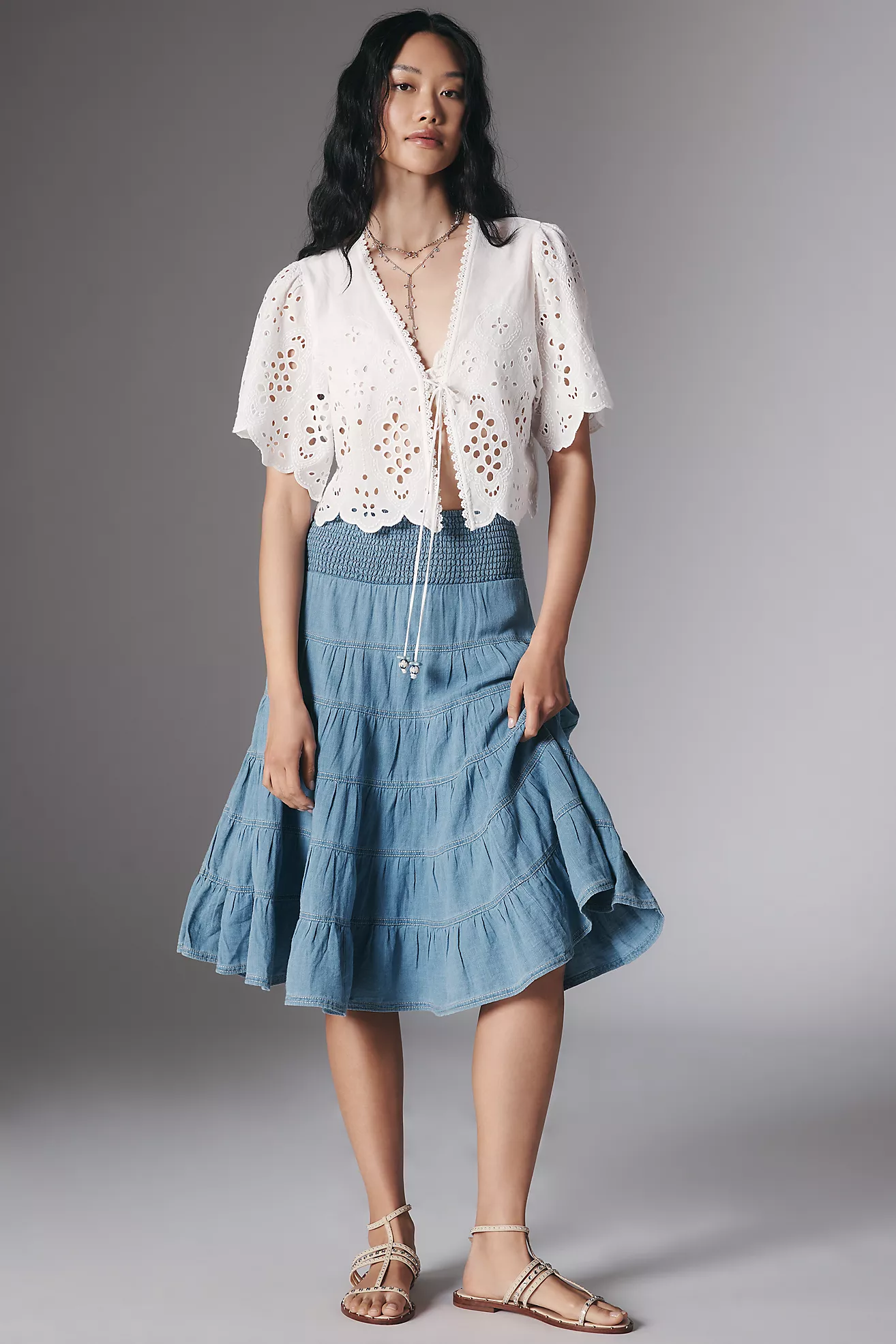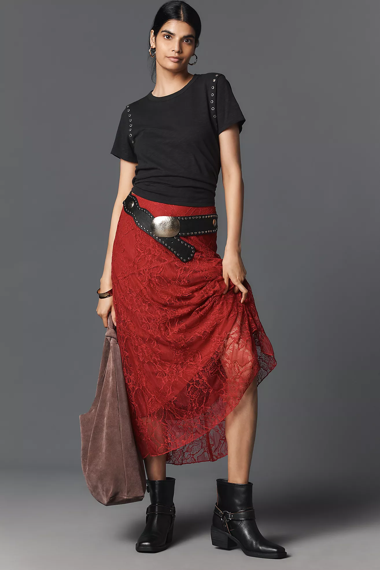By Anthropologie Asymmetric Drop-Waist Lace Midi Skirt