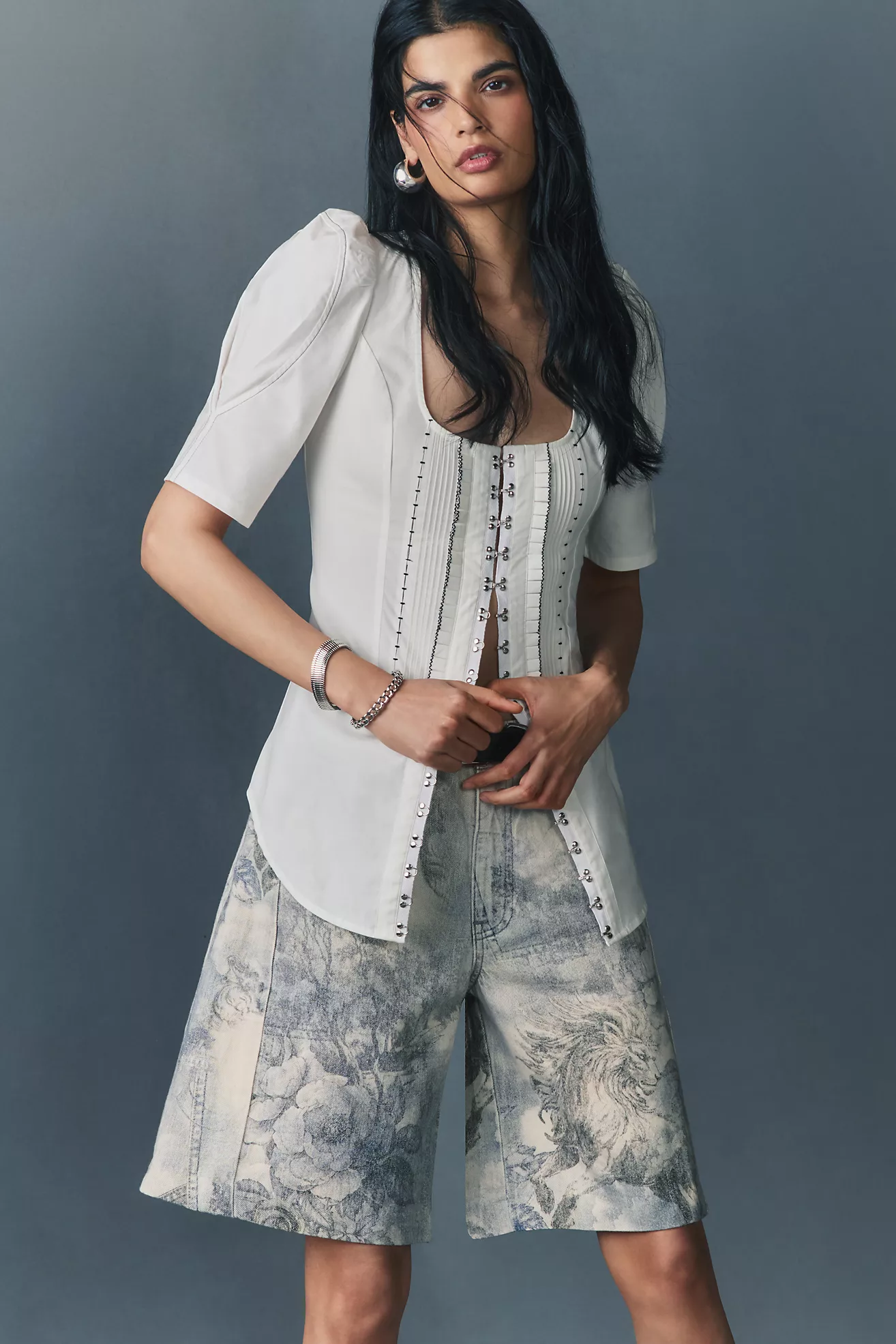 By Anthropologie Puff-Sleeve Bustier Blouse