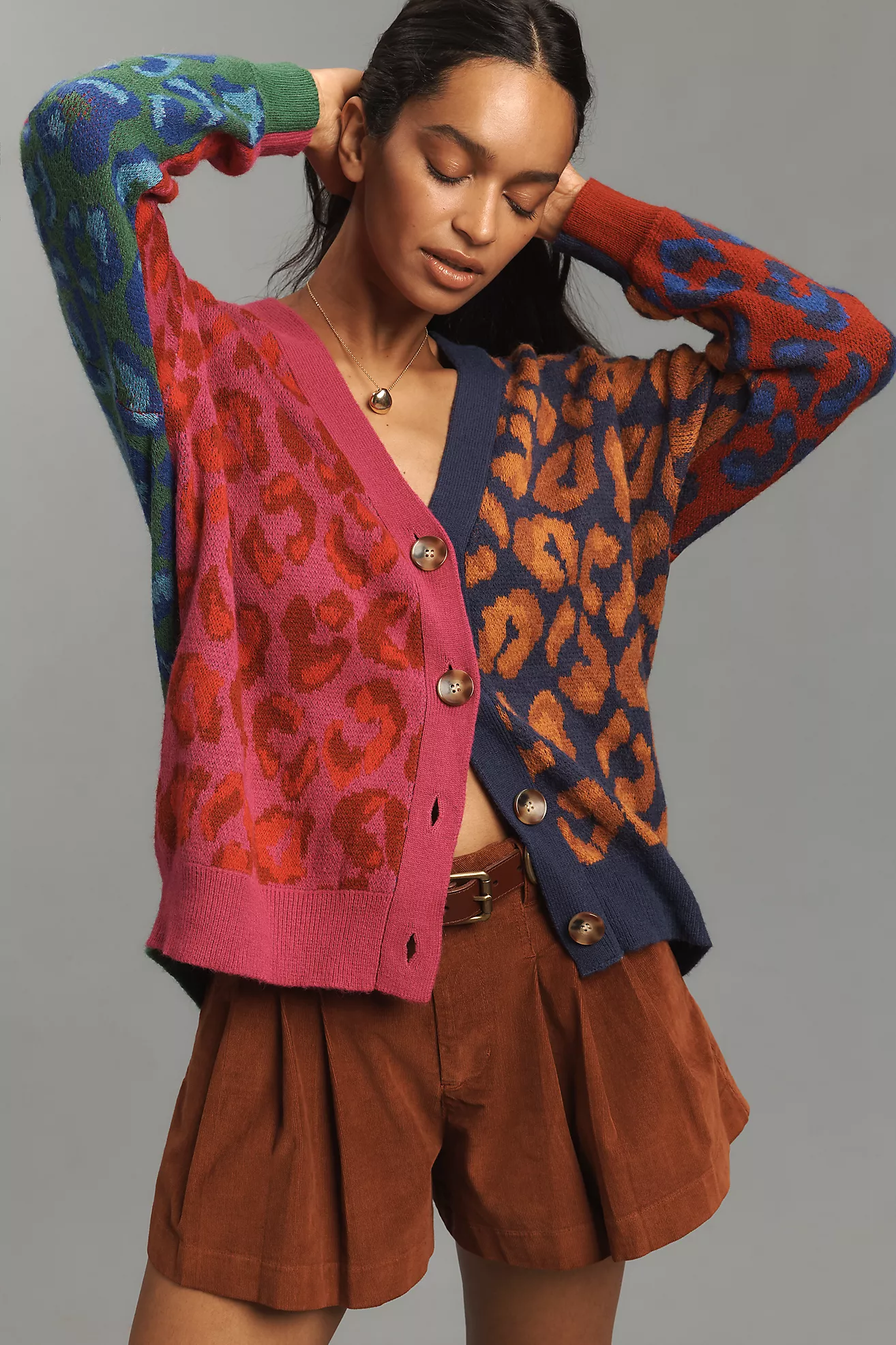 Farm Rio Colorblock Leopard Cardigan