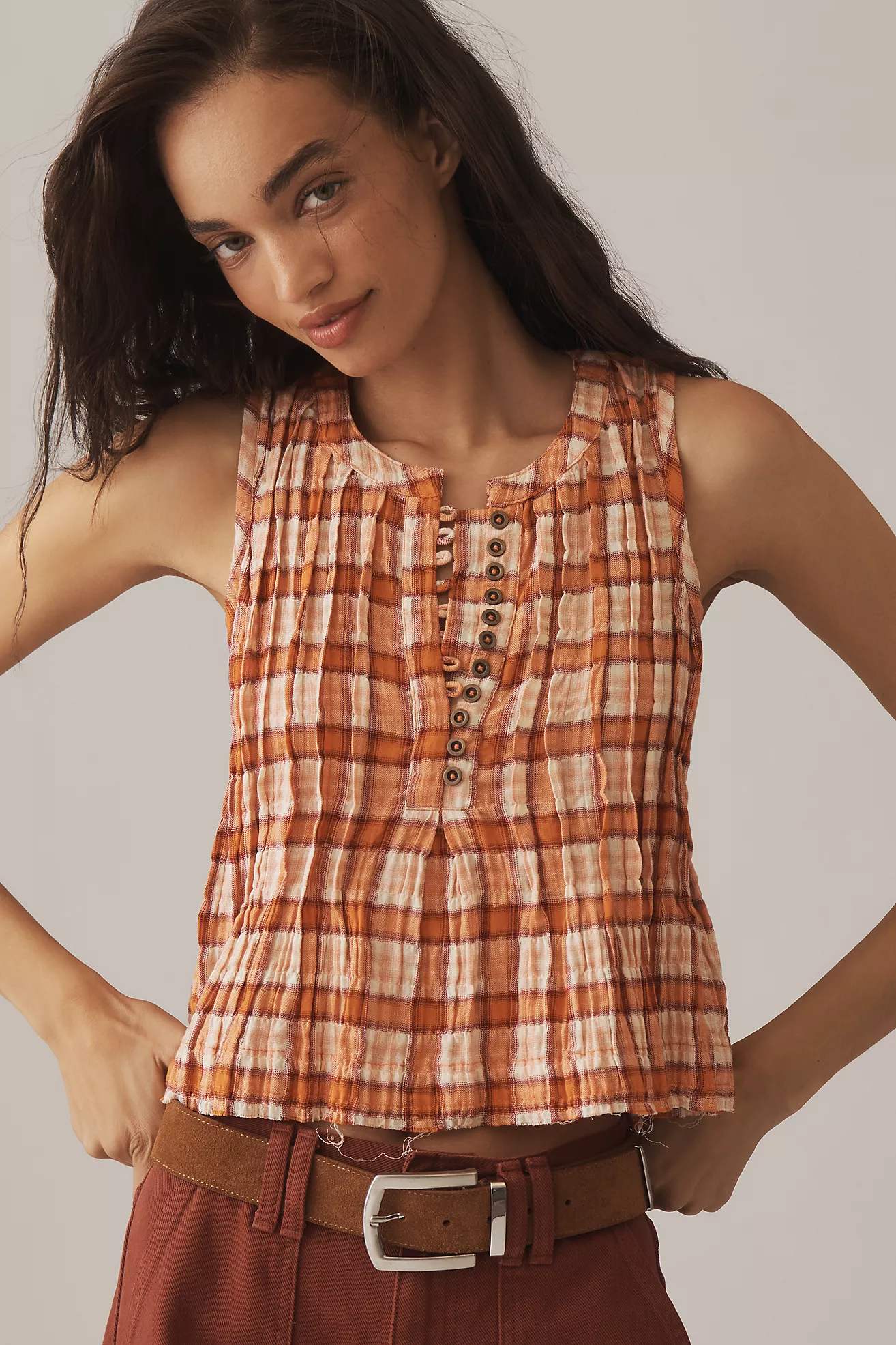 The Lottie Plaid Pleated Tank
