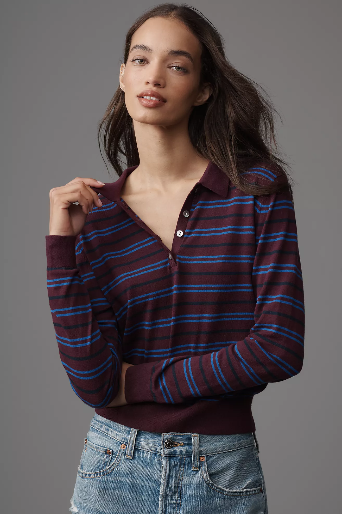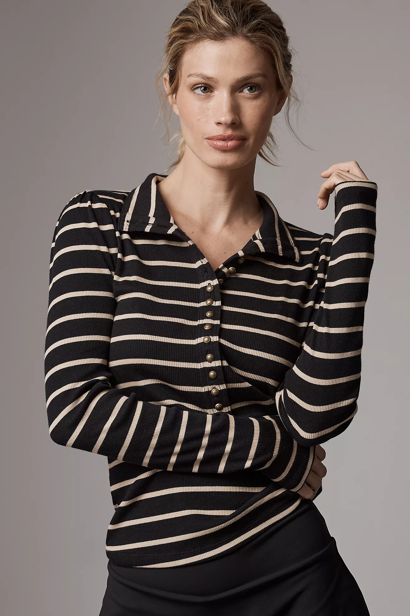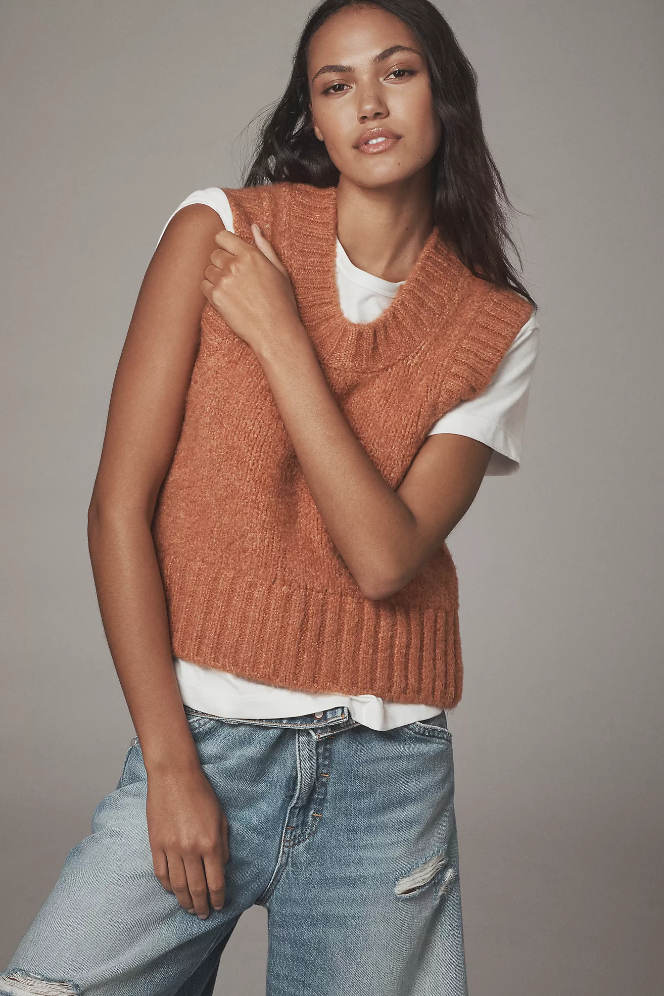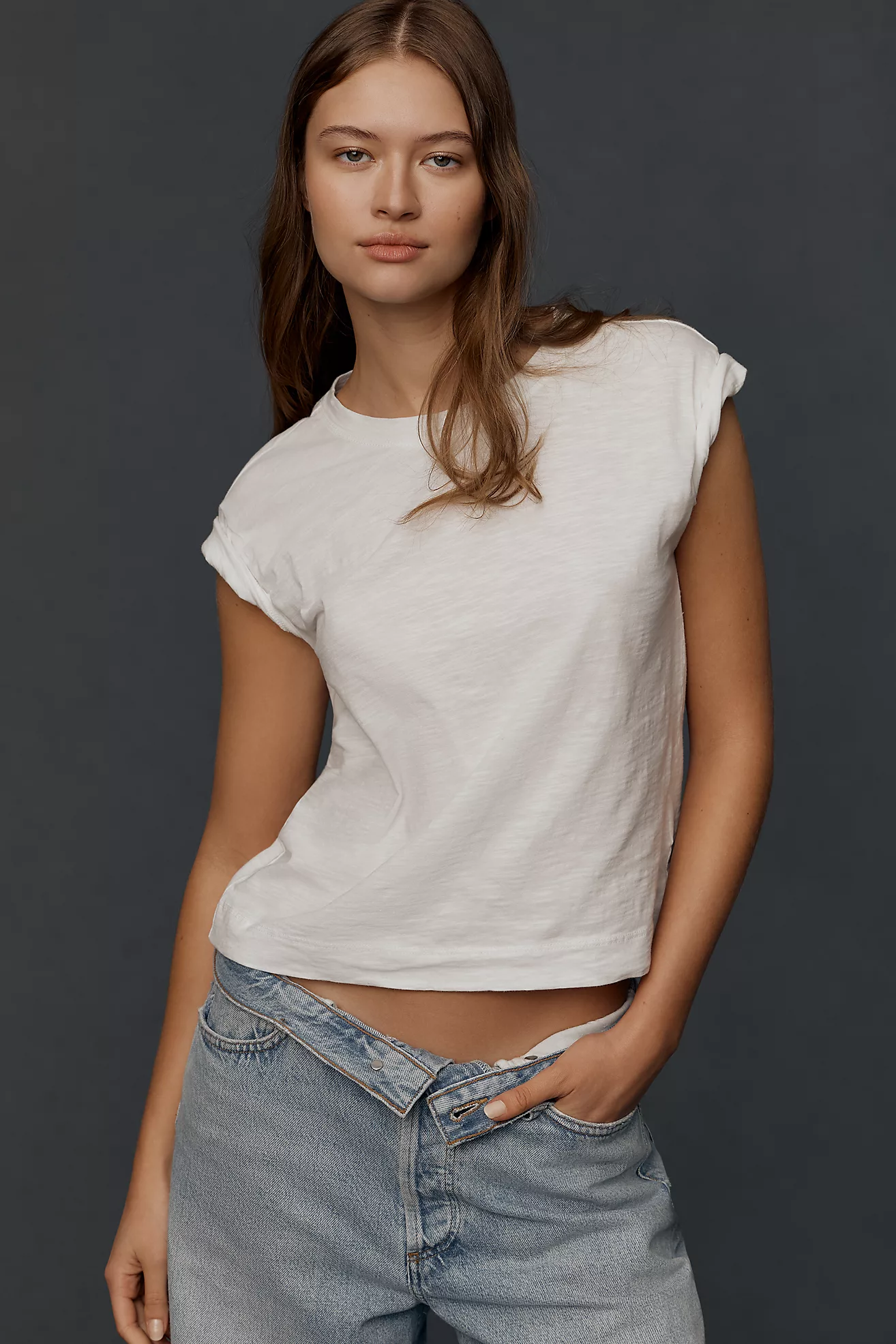 By Anthropologie Cap-Sleeve V-Neck Sweater Tee