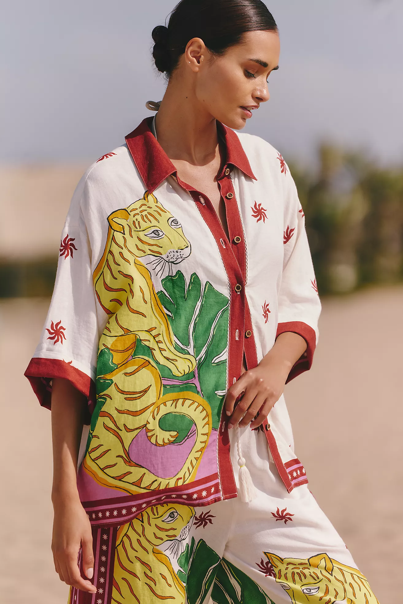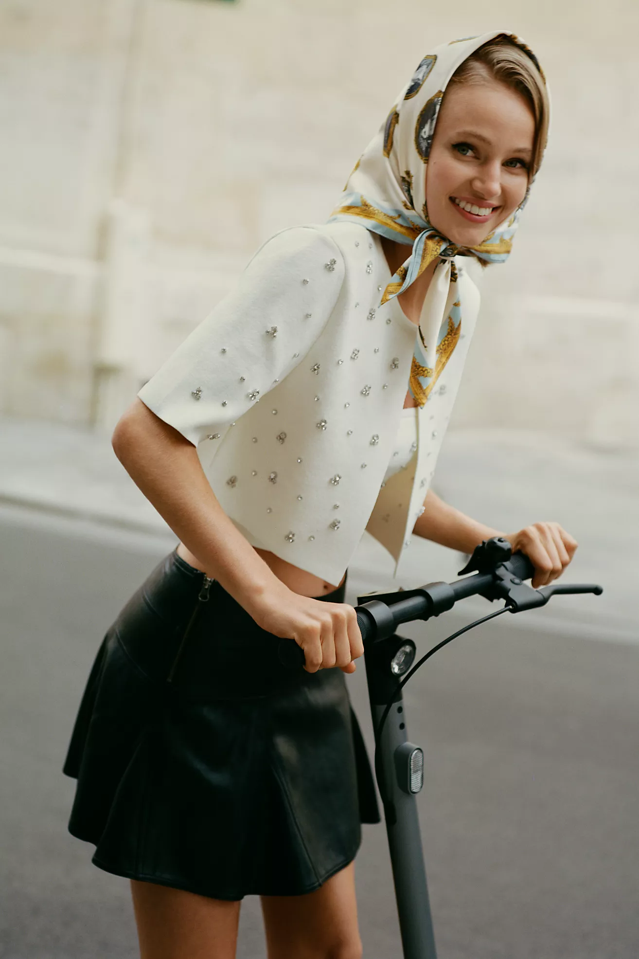 Maeve Short-Sleeve Embellished Crop Cardigan Sweater
