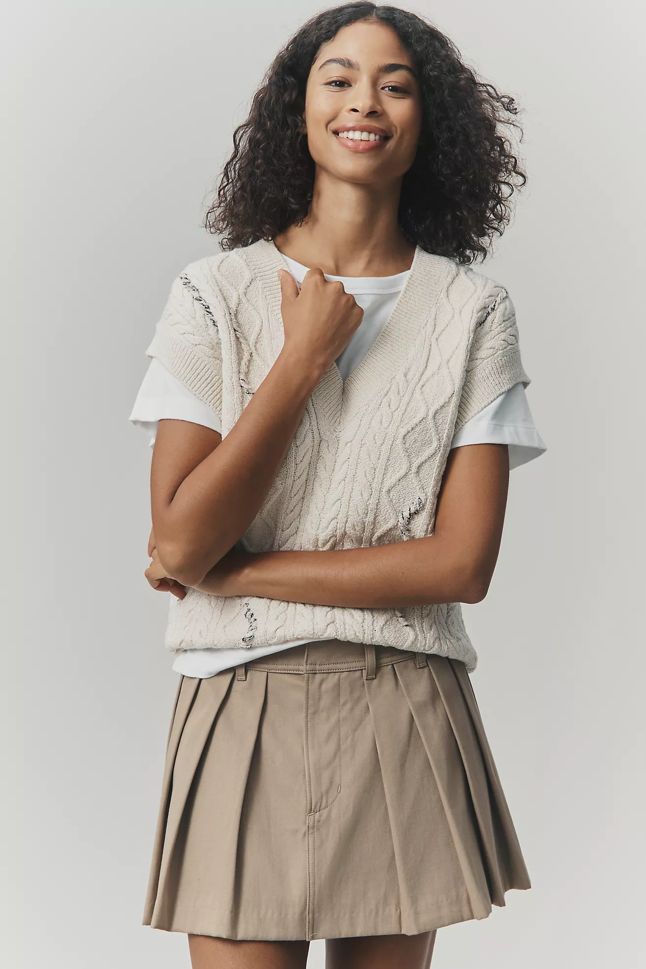 Pilcro Cable-Knit Twofer Sweater