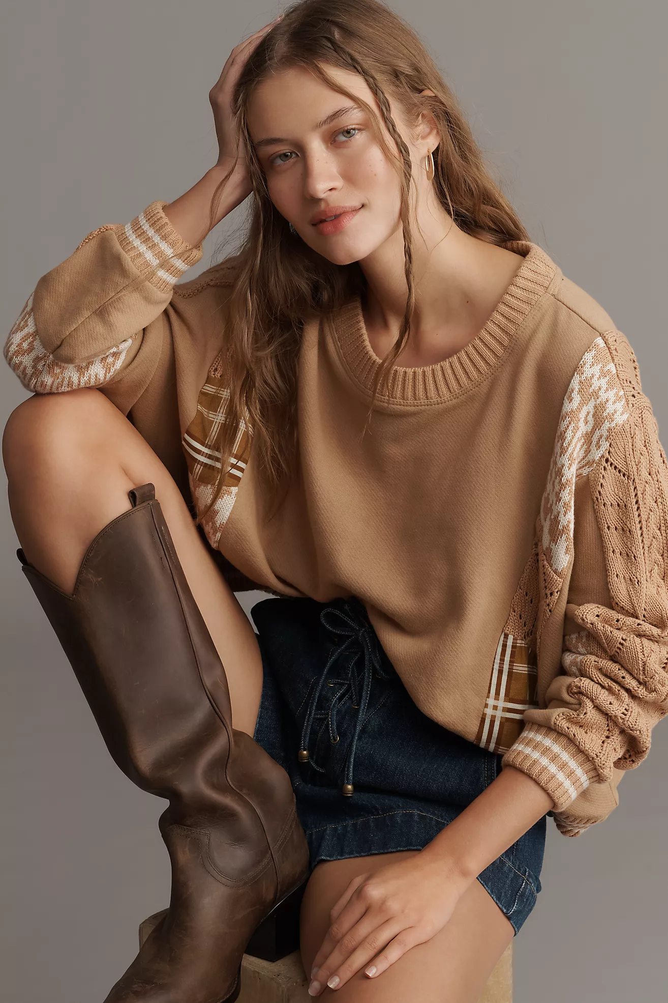 Pilcro Mixed Media Pullover Sweatshirt