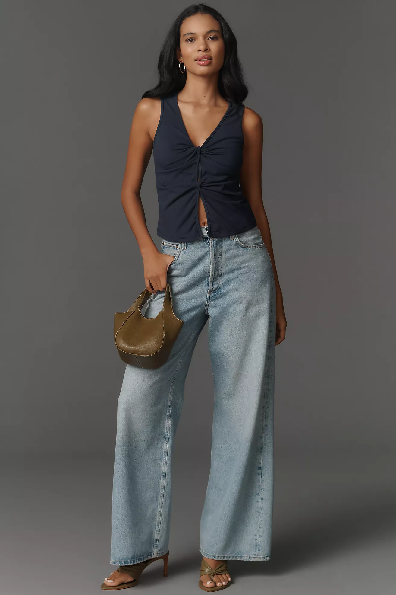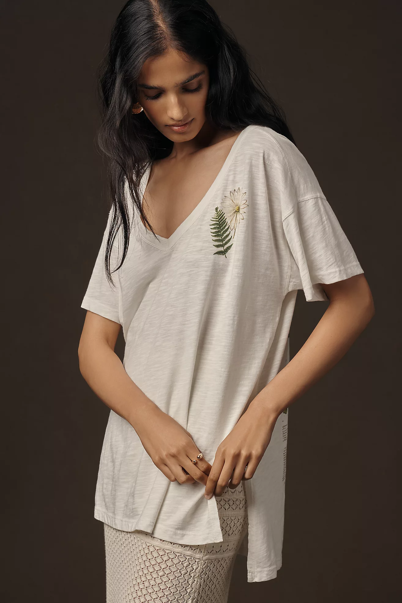 The Jordyn Cotton-Slub V-Neck Oversized Tee by Pilcro