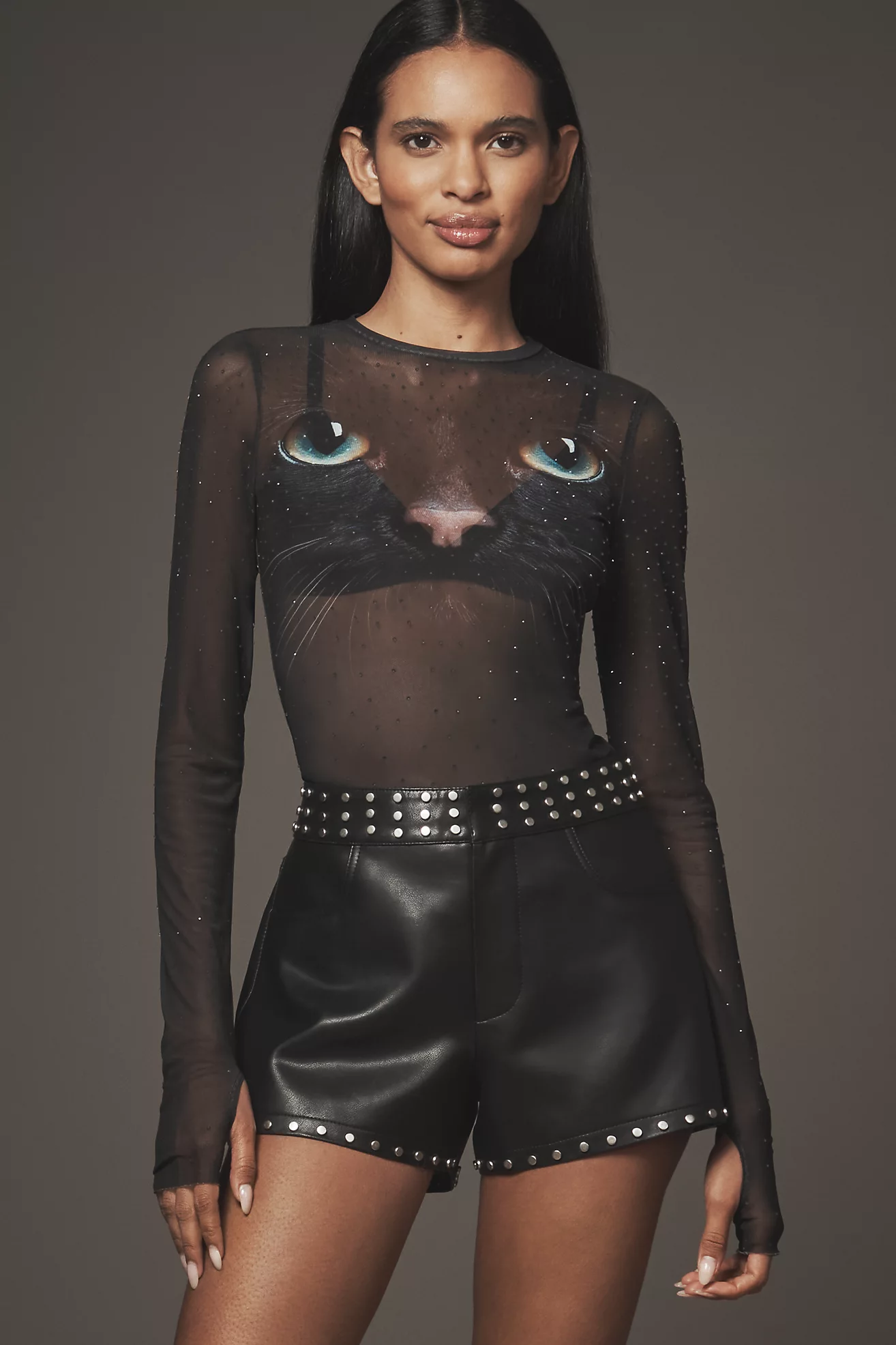 Bardot Vezza Long-Sleeve Floral Mesh Bodysuit