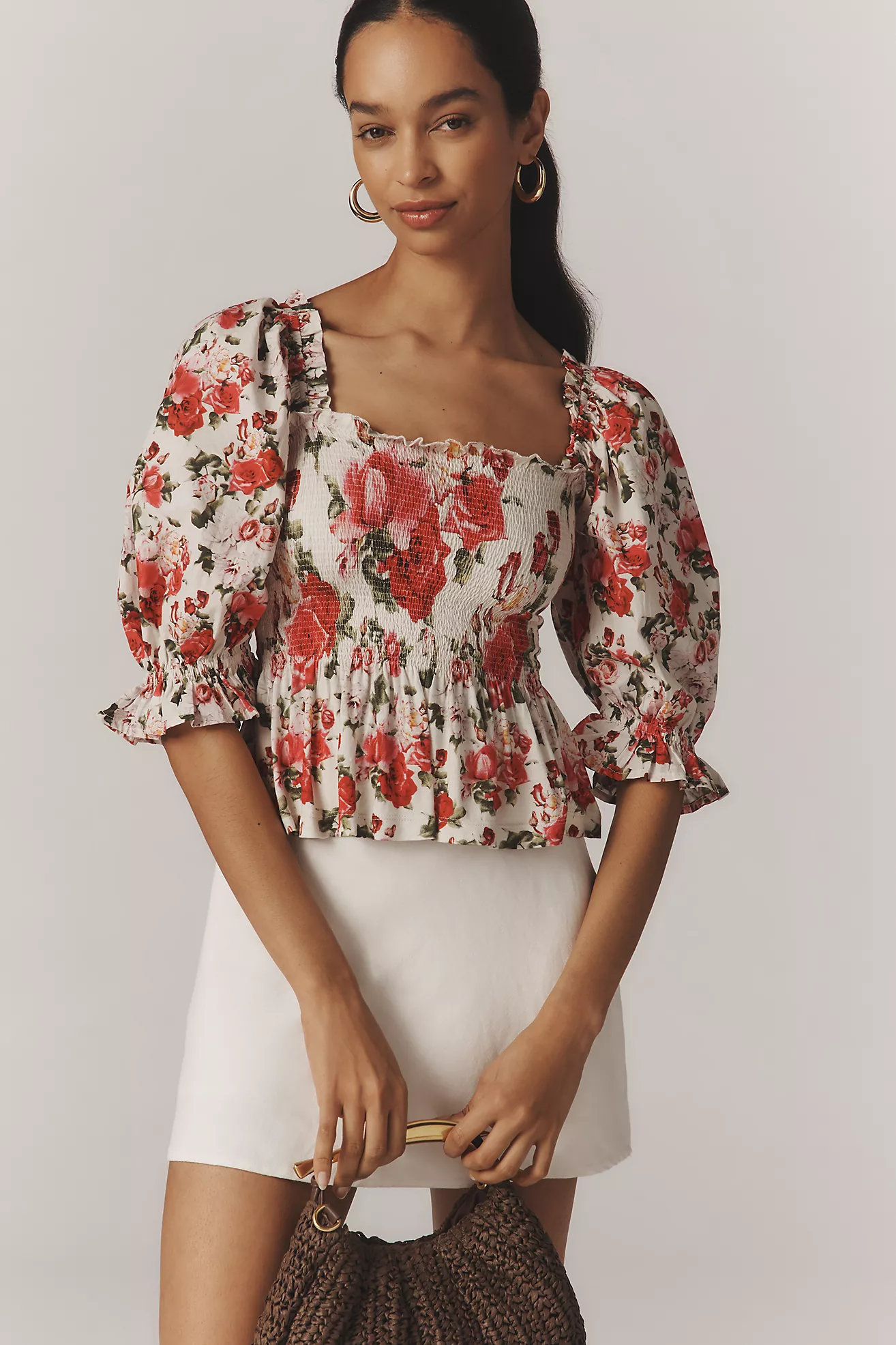 LyreBird Ruffle-Trim Zigzag Smocked Crop Cami