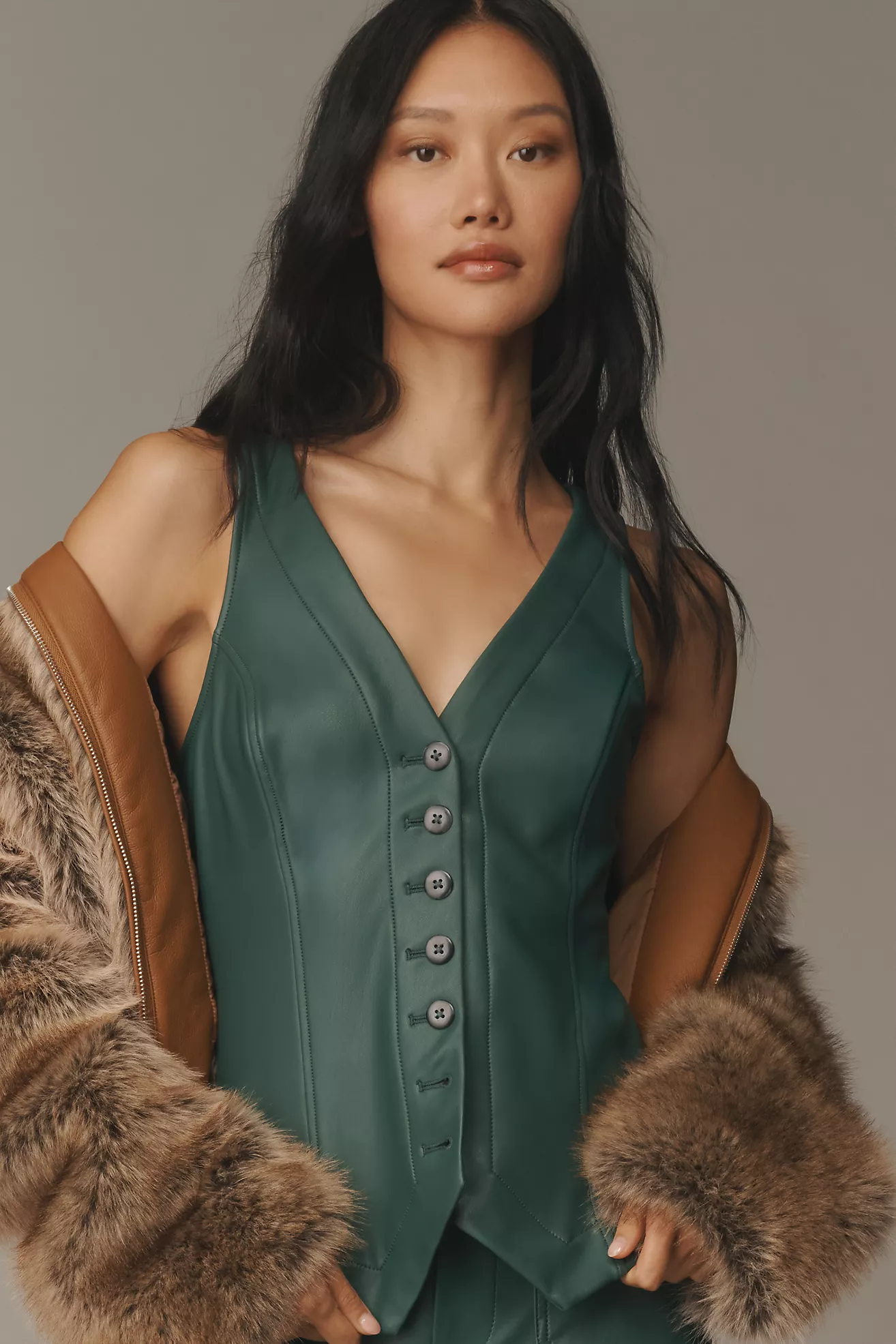 Maeve Faux-Leather Trim Crew-Neck Sweatshirt