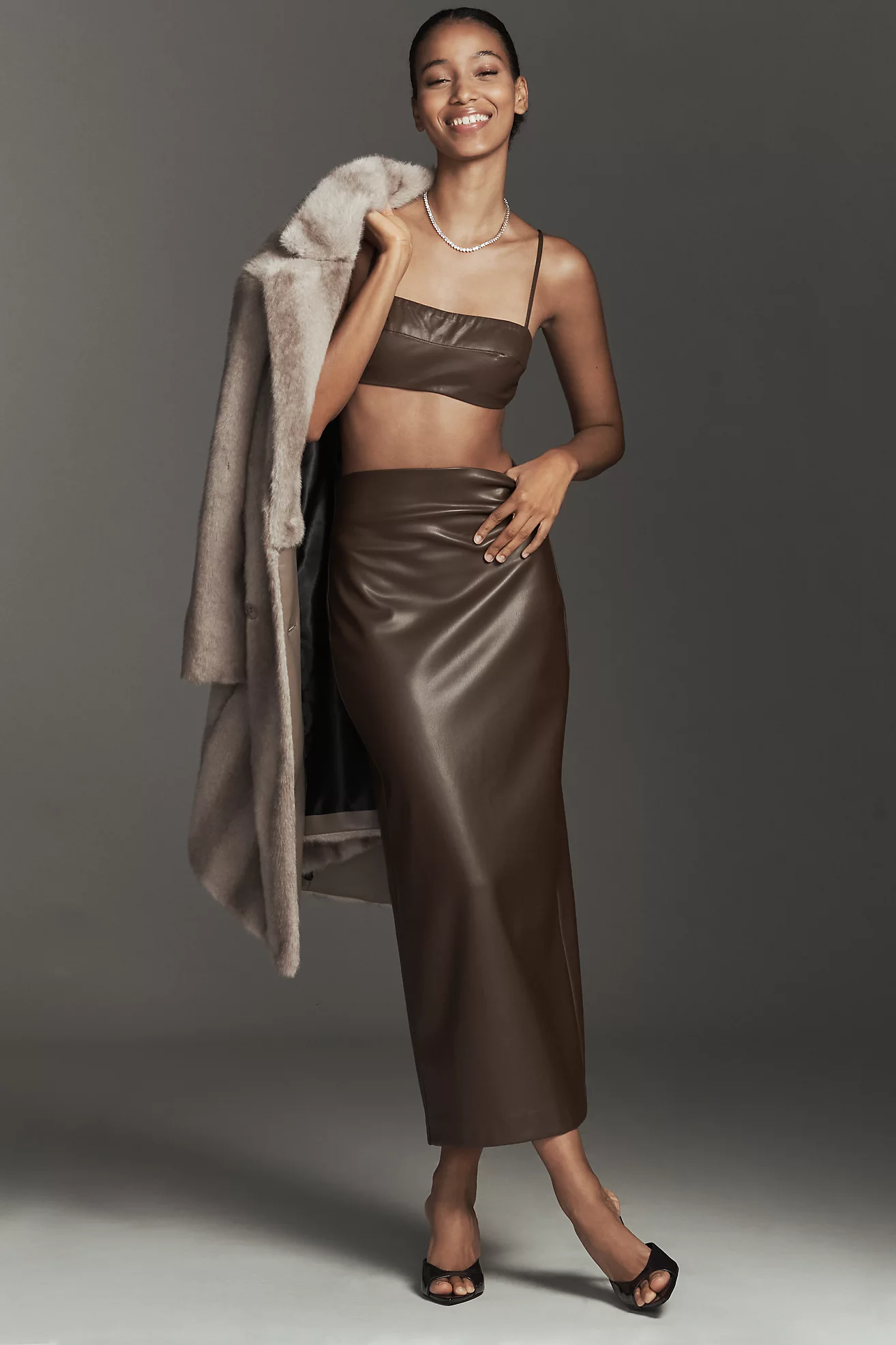 NIA Elodie Faux-Leather Midi Skirt