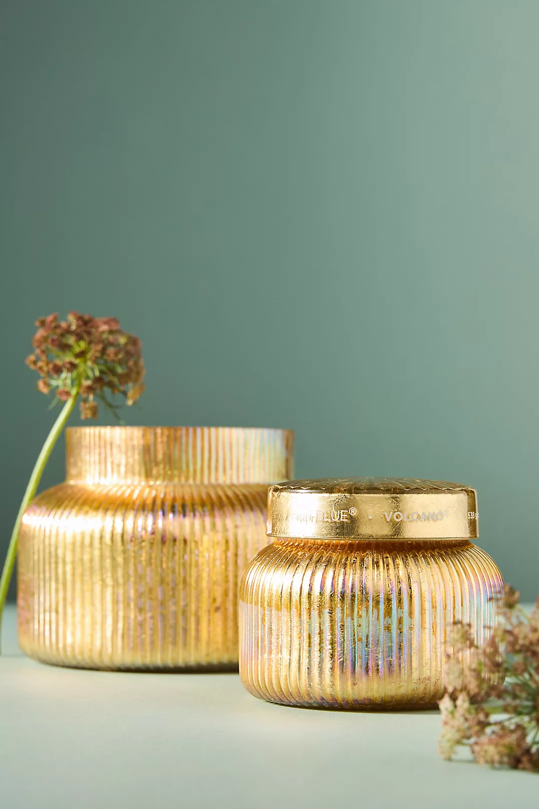 Capri Blue Volcano Gold Ribbed Jar Candle