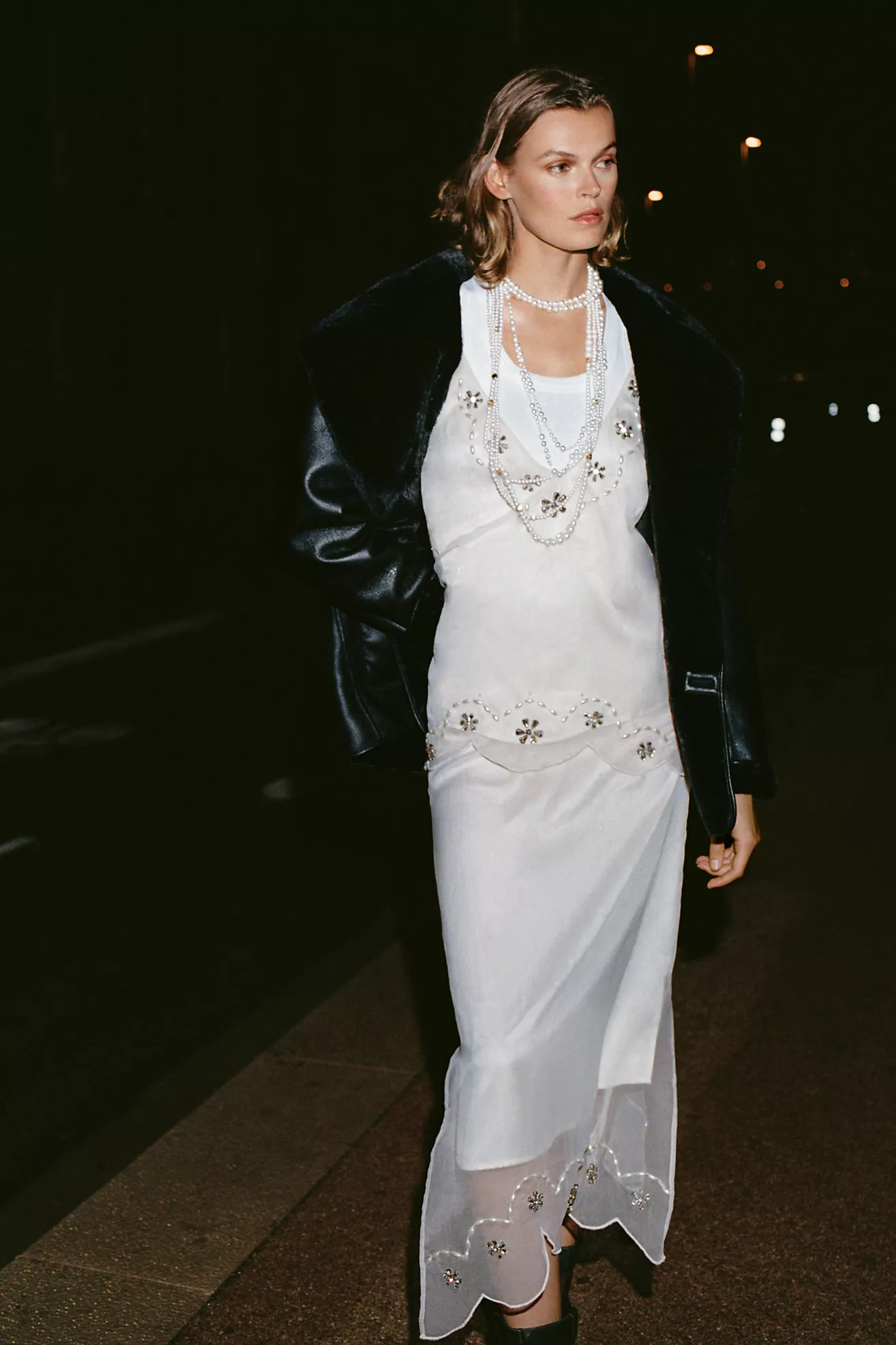 By Anthropologie Crystal-Encrusted Midi Skirt