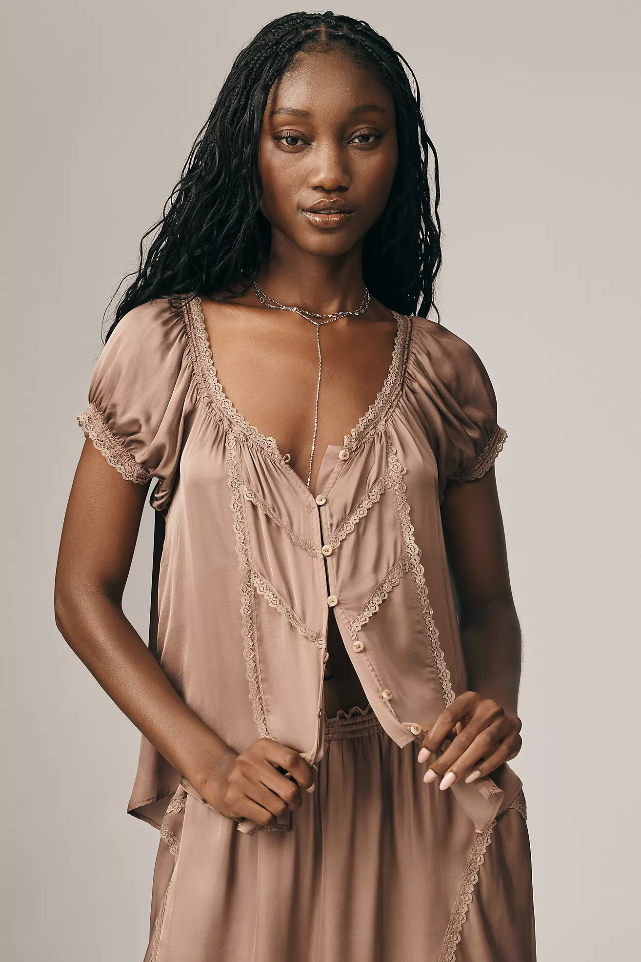 By Anthropologie Short-Sleeve Silky Peasant Top