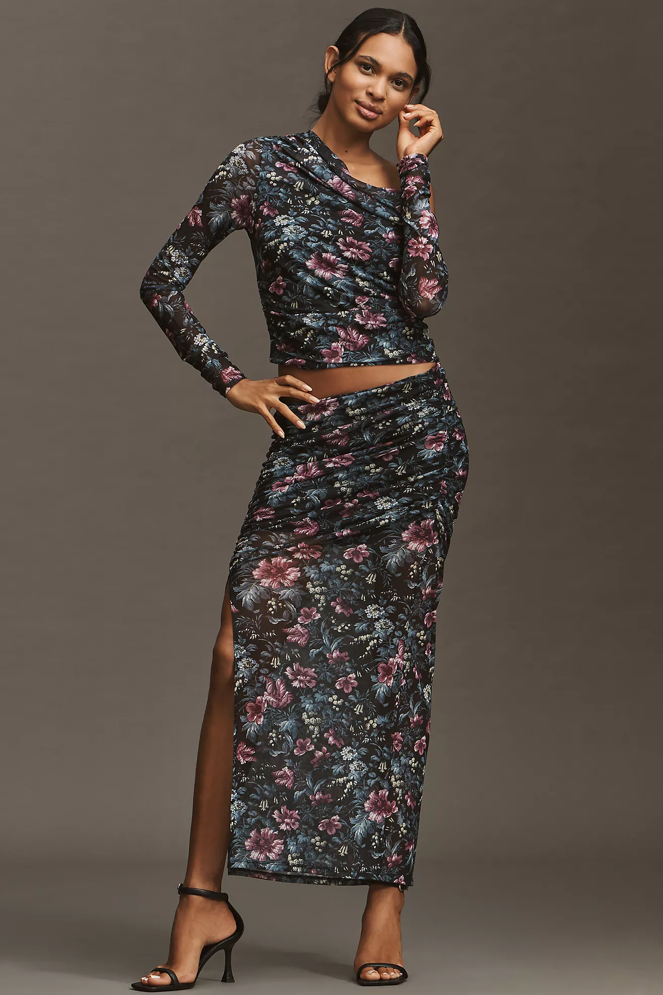 By Anthropologie Ruched Side-Slit Maxi Skirt