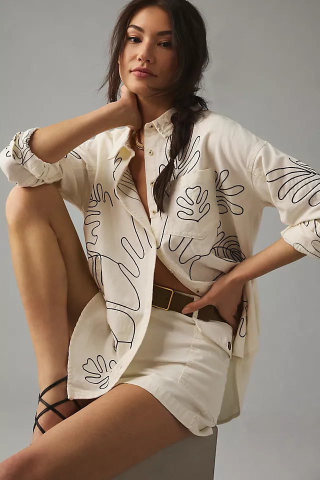 Pilcro Moonflower Buttondown Shirt WHITE