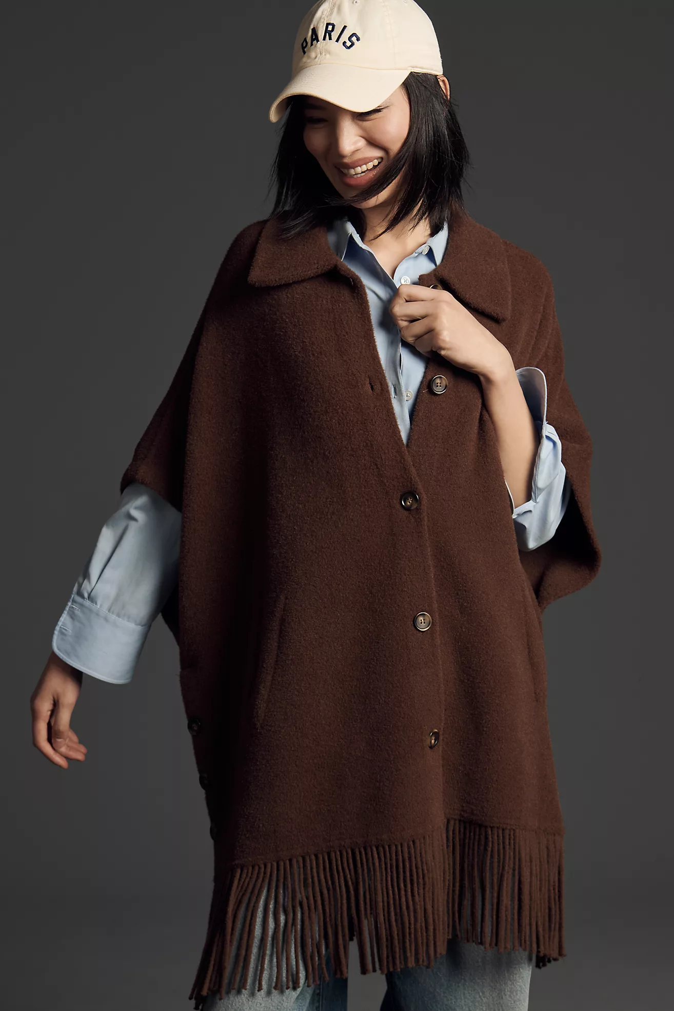 By Anthropologie Herringbone Wool-Blend Oversized Coat